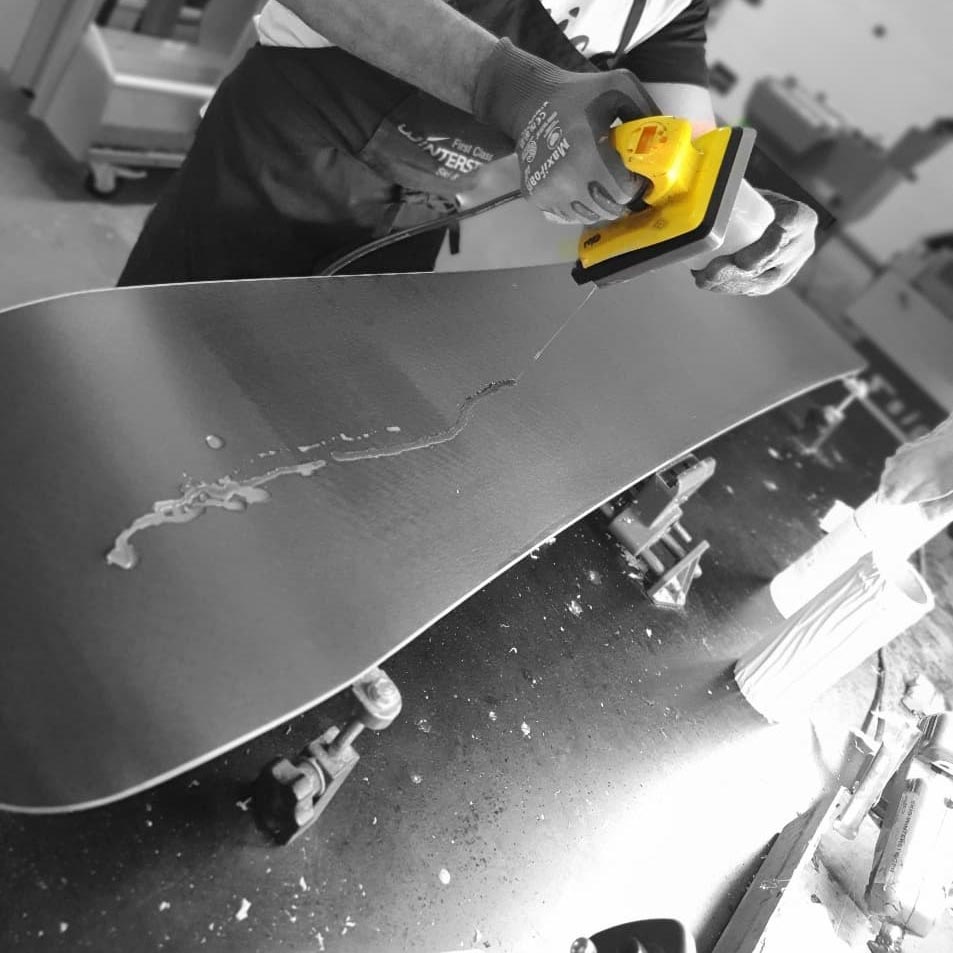La réparation d’une paire de skis peut inclure plusieurs types de travaux différents, tels que la réparation de bosses ou de fissures, le remplacement de bords ou de semelles, ou le re-fartage et l’affutage.